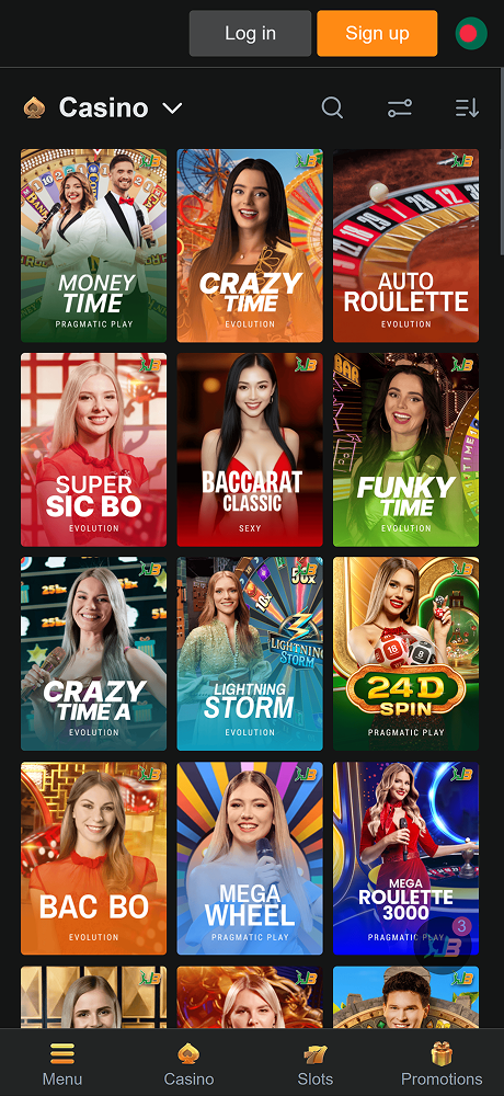 Jeet Buzz অ্যাপে অনলাইন ক্যাসিনো বিভাগ